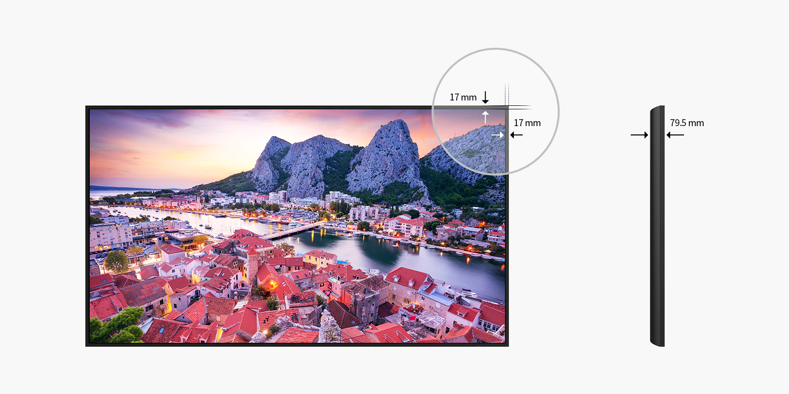 벽면에 밀착 설치 가능한 베젤 크기와 두께로 공간 효율이 뛰어납니다.