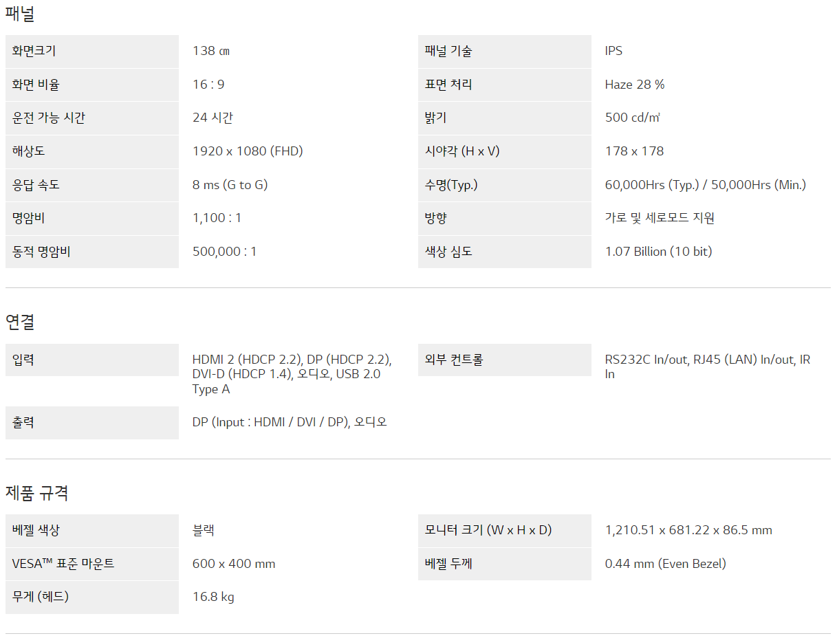 - * 사내 테스트를 기반으로 한 결과이며 실제 테스트 결과는 설치 환경 및 측정 장비에 따라 다를 수 있습니다.
