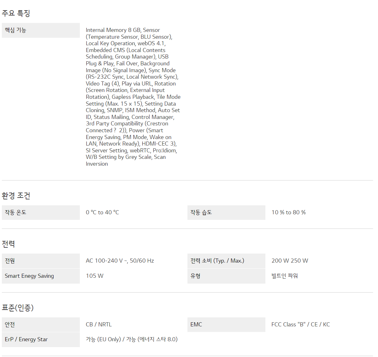 내장형 SoC와 webOS 스마트 사이니지 플랫폼으로 미디어 플레이어 없이 콘텐츠를 재생하거나