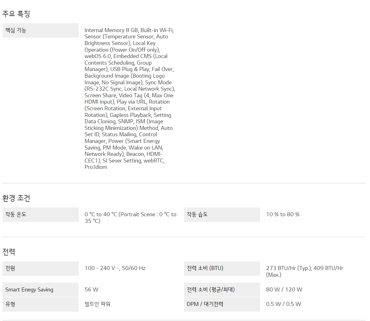 - * 외부 센서는 별도 구매하여 webOS 플랫폼과의 호환성을 테스트해야 합니다.