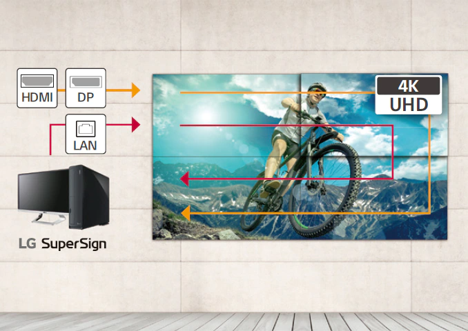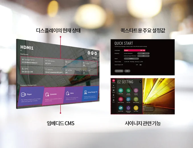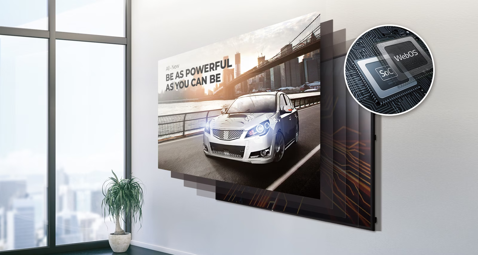 내장형 SoC와 webOS 스마트 사이니지 플랫폼으로 미디어 플레이어 없이 콘텐츠를 재생하거나