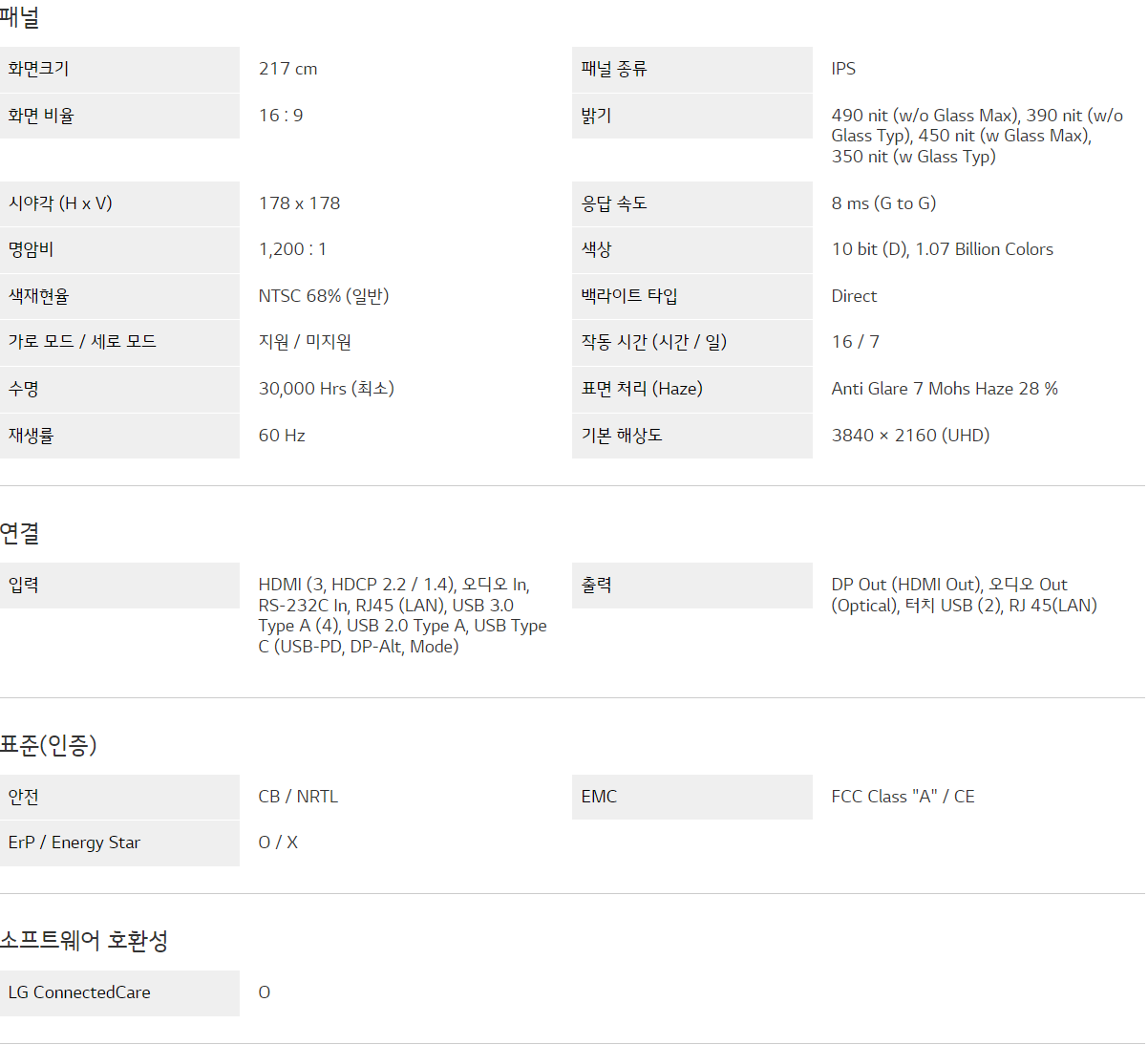 * 멀티 터치, 에너지 절감, HDMI 출력