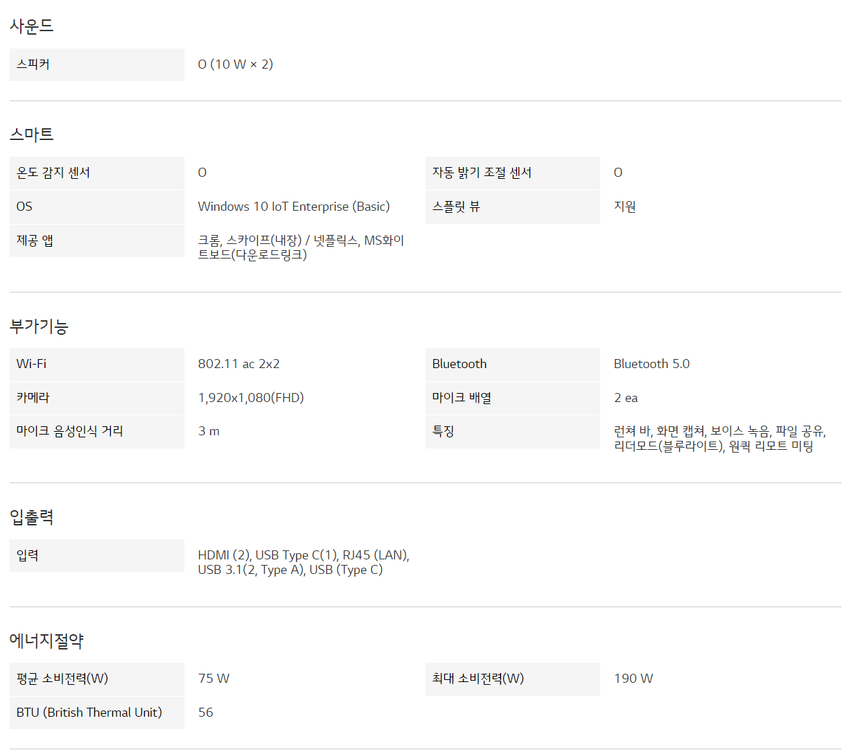 107cm(대각선 길이) 올인원 디스플레이에 카메라, 마이크, 스피커, 스탠드까지 이제 LG One:Quick 하나로 손쉽게 영상통화를 시작 할 수 있습니다.