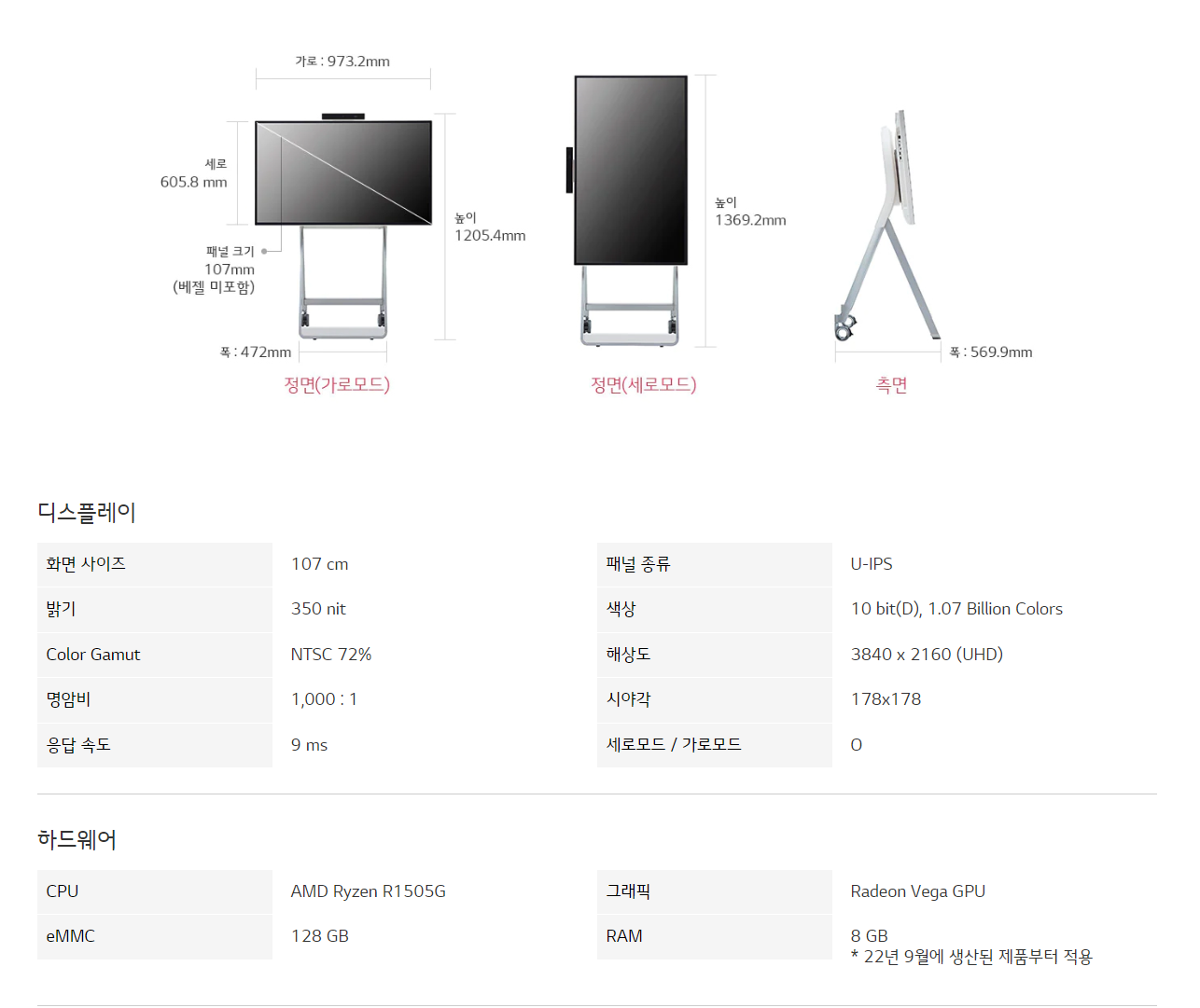 라이프 스타일을 이해하는 스마트 디스플레이 LG One:Quick은 휠 스탠드로